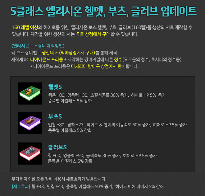 160제 엘리시온 보스 장비(헬멧, 부츠, 글러브) 업데이트