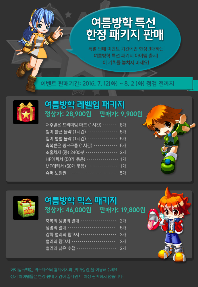 여름방학 특선 한정패키지 아이템 출시!