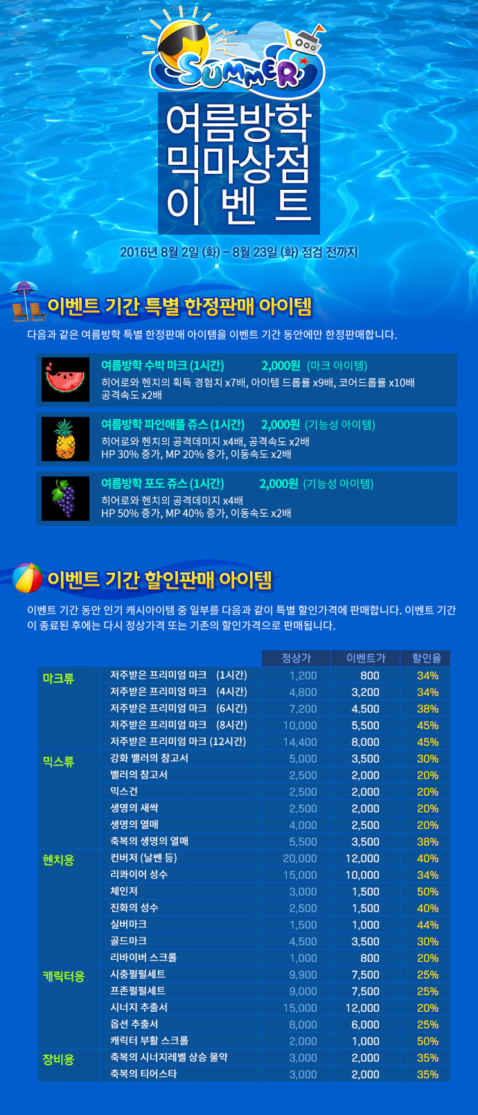 여름방학 믹마상점 이벤트